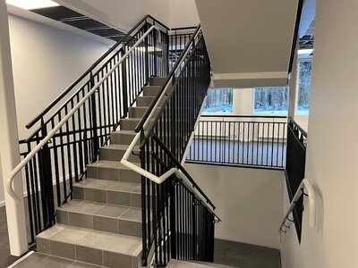 Balkongräcken och trapp-räcken på Sporthallen i Alvesta